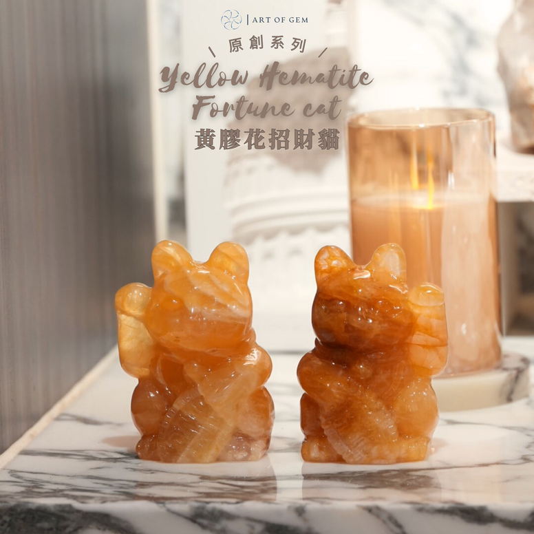 Traditional Symbolism of the Fortune Cat x Energy Properties of Yellow Hematite Quartz